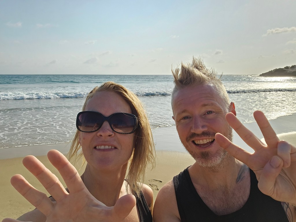 It wasn’t long after we emerged from our cottage that our new friend, James came by and wanted to sell us some bracelets. We decided we’d do it and Kristin got 2 for her daughters (which he’d make with their names and bring back later) and I just got a black and plain wood bead one. They were to be about $5 each which is plenty but for us it means so little, and for them it means so much.