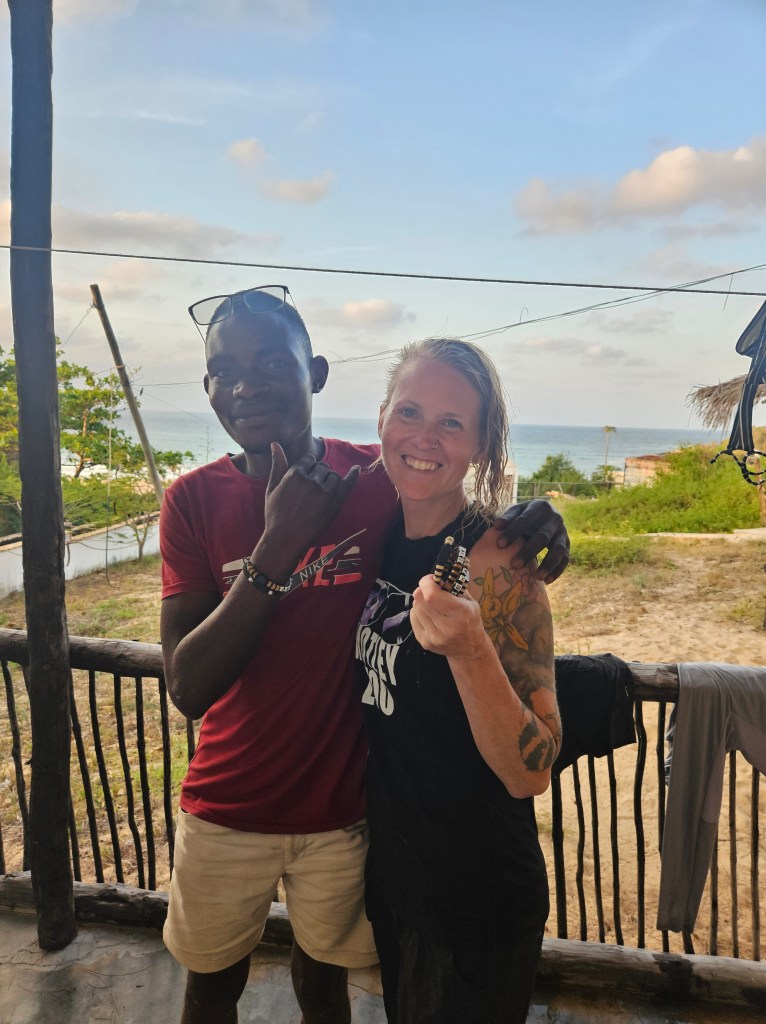Bryan was happy as a clam surfing- I took a turn also and caught a couple waves, but honestly I got so winded paddling it was a bit ridiculous but I caught most of what I went for so that was good. One of the local guys was egging me on and said, “Hey I want to see what you can do, let’s go”, as I paddled into a wave. Don’t get me wrong it was tiny small waves, which wouldn’t really be much to surf in general, but Bryan never cares and always wants to get in the water- especially to be able to add Mozambique to the list of places he’s gone.
