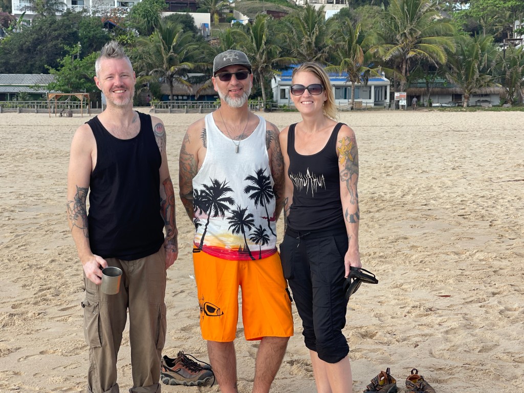 Bryan really wanted to go surfing as we’d seen some boards to rent and a few people teaching lessons, so we got our stuff ready and went down to hang out for a bit. Bryan went to the stand while Kristin, Jon and I hung out on the beach before Jon was ready to get in the water- where he stayed for quite a while. Thankfully there was a guy setting up canopies and we took the op to get under one of them before anyone else took it- because I knew I could not be out in the sun all day and expect to be able to do the snorkel trip too. It was the best decision ever- although we couldn’t find the guy that was setting them up to pay him, but maybe he would see how long you stayed and then come over?